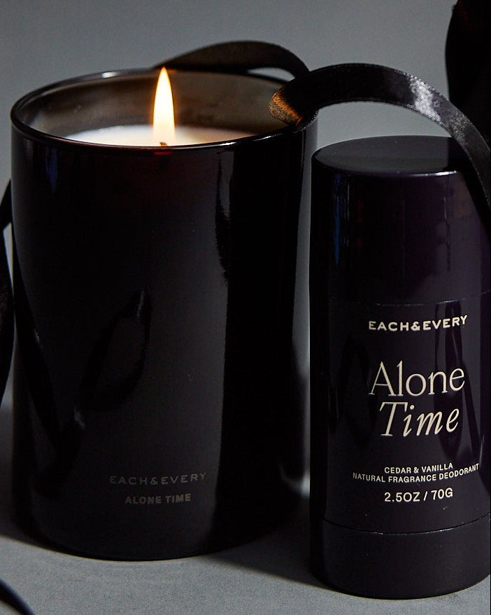 Make the most of your Alone Time with our new Alone Time Set: Containing our beloved Alone Time (Cedar & Vanilla) Natural Deodorant and our new Alone Time (Cedar & Vanilla) Natural Fragrance Candle.